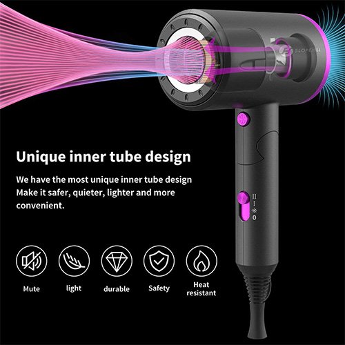 - 【Ions & Bioceramic Hair care】– Adopts ion and bio-ceramic technology, our hair blower will release millions of moisturizing negative ions combined with far-infrared heat to reduce static and make hair soft and smooth. With constant temperature protection function, intelligent temperature control to prevent overheating damage, good for hair care.