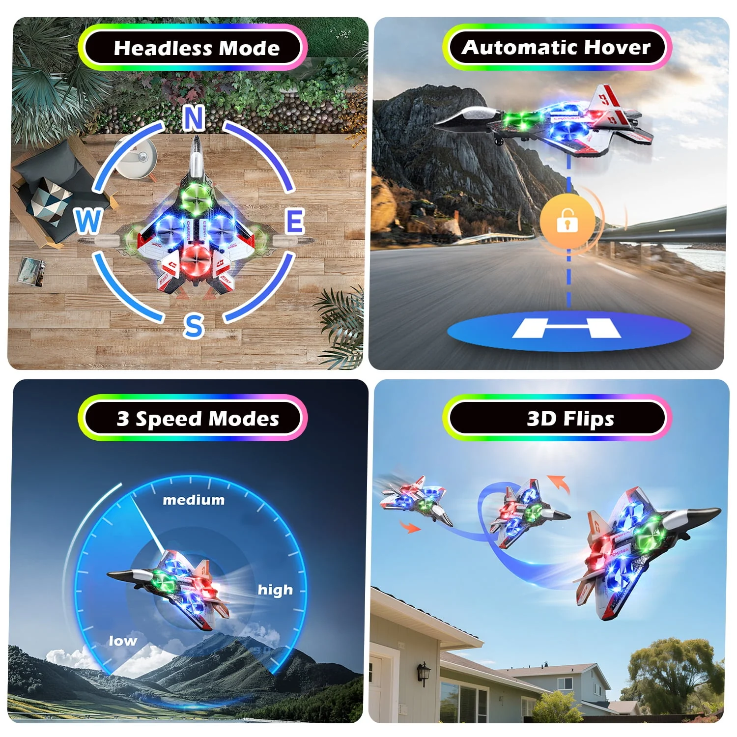 Headless Mode Function – Fly in any direction without worrying about orientation—perfect for novice pilots.
