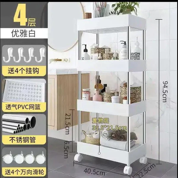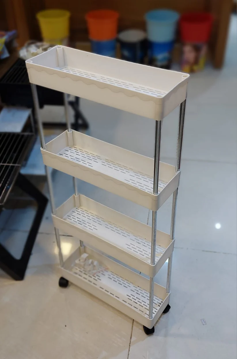 - Four adjustable shelves: The cart has four sturdy shelves that can be adjusted to accommodate items of different sizes and shapes.