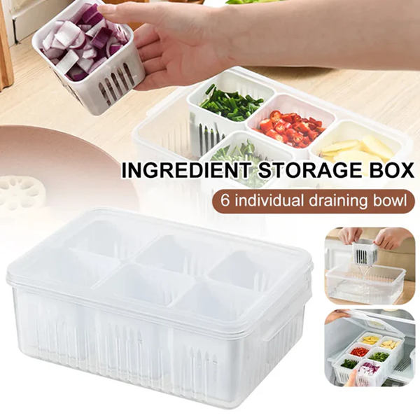 6 Grid Vegetable & Fruit Storage Box with Lid