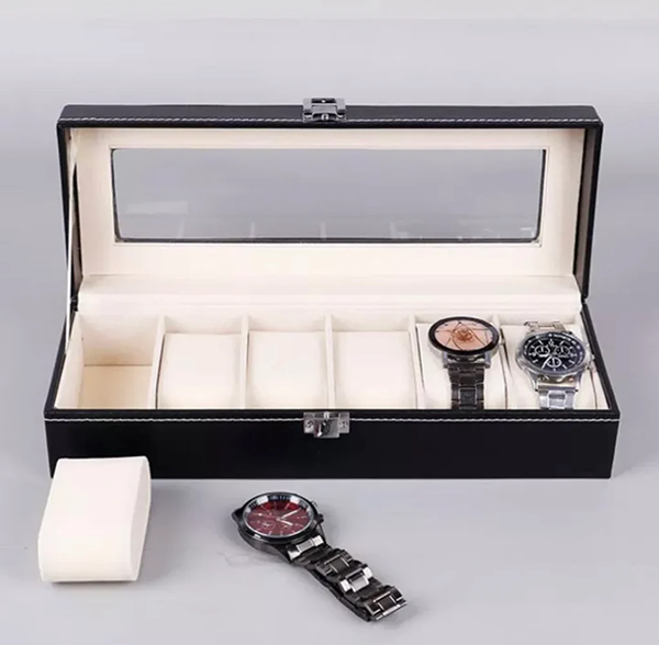 - 6 Slot Leather Watch Box & Jewelry Organizer