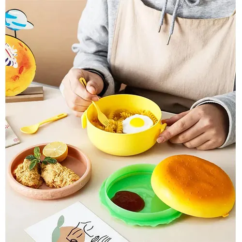 - Kids get attracted to the burger lunch box, which helps with better eating. The design of this cute little burger lunch box is so attractive that kids really love them and end up eating all lunch from their tiffin box. If you are looking for a school lunch box for boys and girls, then this lunch box is perfect.
