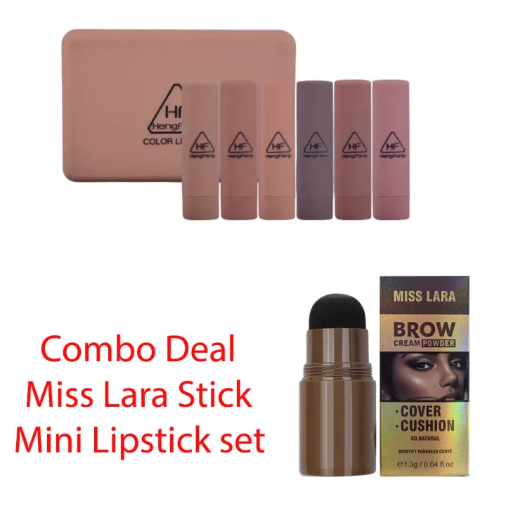 Combo Deal Miss Lara Cushion Cover Shadow Stick Powder For Eyebrown & Hair + Mini Matte Lipsctick Set