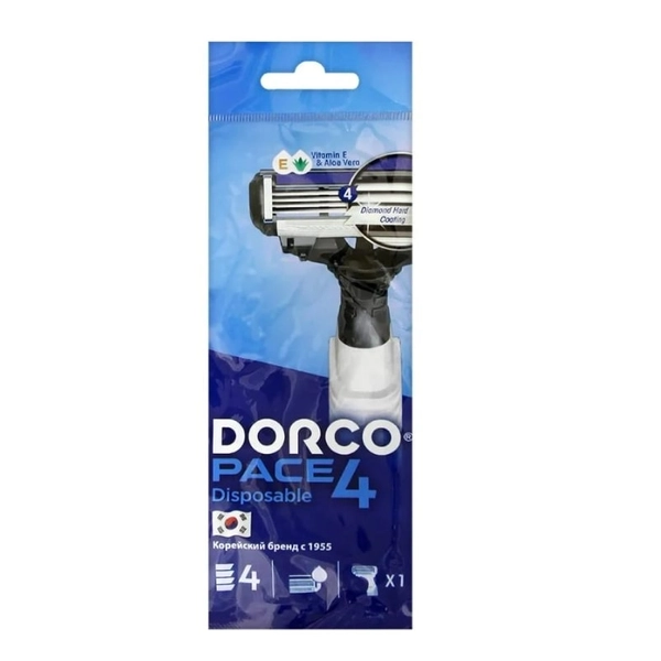- Dorco Pace 4 is a razor with four blades made of the highest quality materials to provide exceptional shaving comfort for men with hard facial hair.Four blades attached at the right angle easily remove stubble with a minimal number of strokes and the moisturizing strip leaves a pleasant feeling of freshness on the skin.The rubber handle does not slip from your hand. The open structure ensures free drainage of trimmed beard, thanks to which the razor does not clog, which facilitates cleaning the blades and extends their life.
