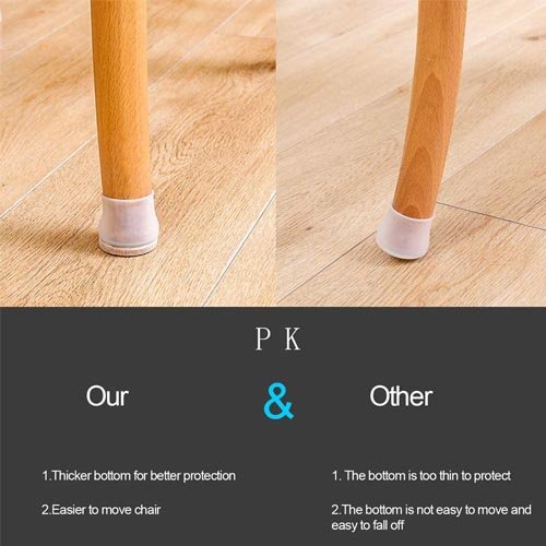 - Protect the legs and floor of the chair from damage, and the silicone leg caps prevent scratches and noise without leaving traces. Suitable for various square chair legs, such as dining chair, bar chair, terrace chair, kitchen chair, metal bistro chair, desk chair, etc.