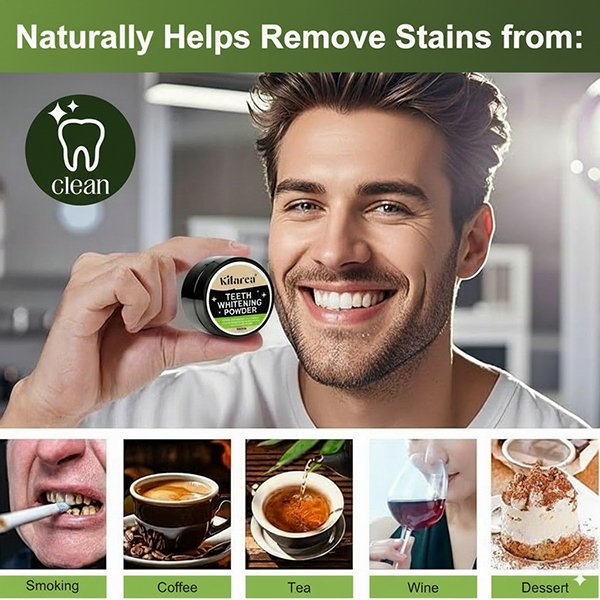 Kilarca Whitening Teeth Powder is a premium oral care solution specially formulated to deliver guaranteed results. It deeply cleans teeth and removes stubborn stains caused by coffee, tea, gutka, and mawa, helping restore your natural white smile. With its unique blend of activated charcoal and herbal extracts, it not only whitens teeth but also freshens breath and supports long-term oral health.