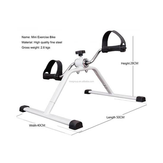 - Adjustable resistance control. Straps keep feet in place while peddling.