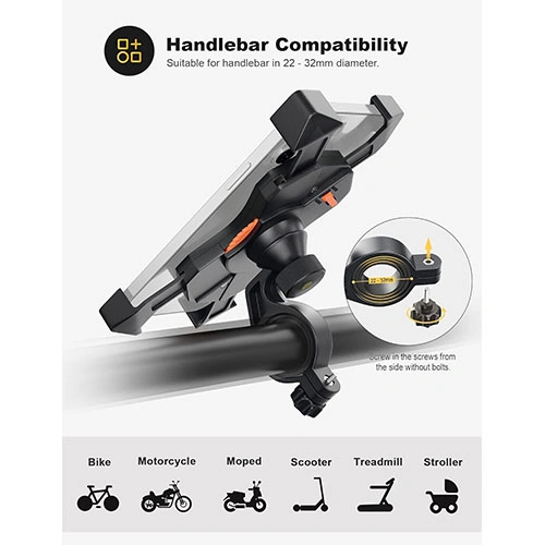 - Sturdy and Secure: The clamp comes with 4 support corners to ensure your phone stays securely attached throughout your Bicycle
