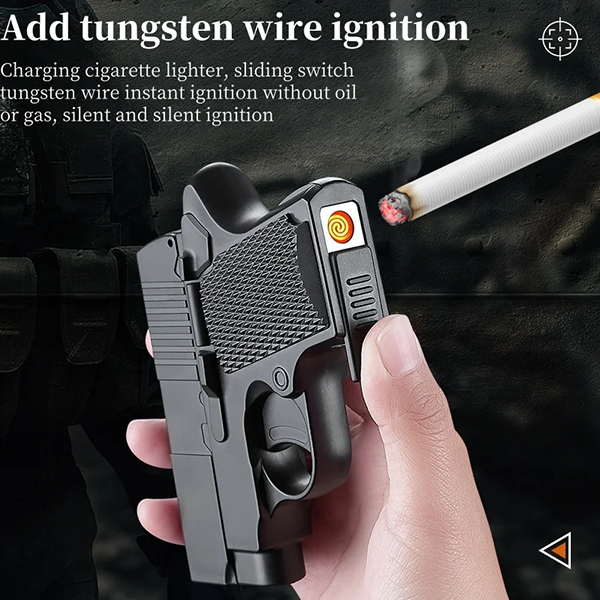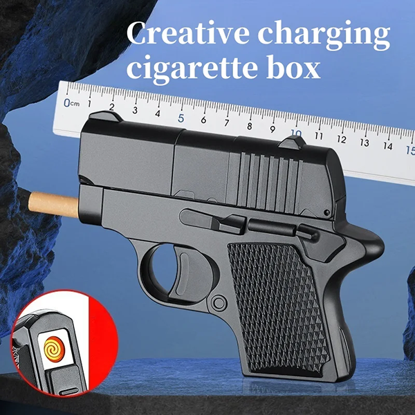 Multi-Functional Gun Shaped Cigarette Box with Type-C Rechargeable Lighter