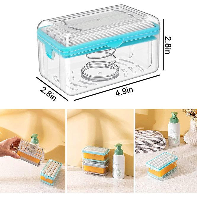 - Multifunctional Soap Dish — 2 In 1 Washing And Storage In One, Fast Lathering. The Bottom Has Springs For Easy Access To Soap From The Box, And The Roller Grooves Are Raised For Easy Access.