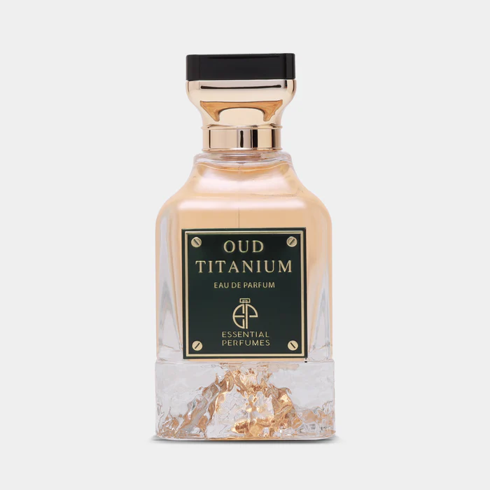 - Discover Essential Perfume Oud Titanium, a Woody Oriental fragrance that captivates the senses. Opening with the fresh allure of bergamot and apple, it transitions into a heart of rich jasmine. The scent journey concludes with a luxurious blend of musk and oud, leaving a lasting impression of elegance and depth. Experience the essence of sophistication with Oud Titanium.