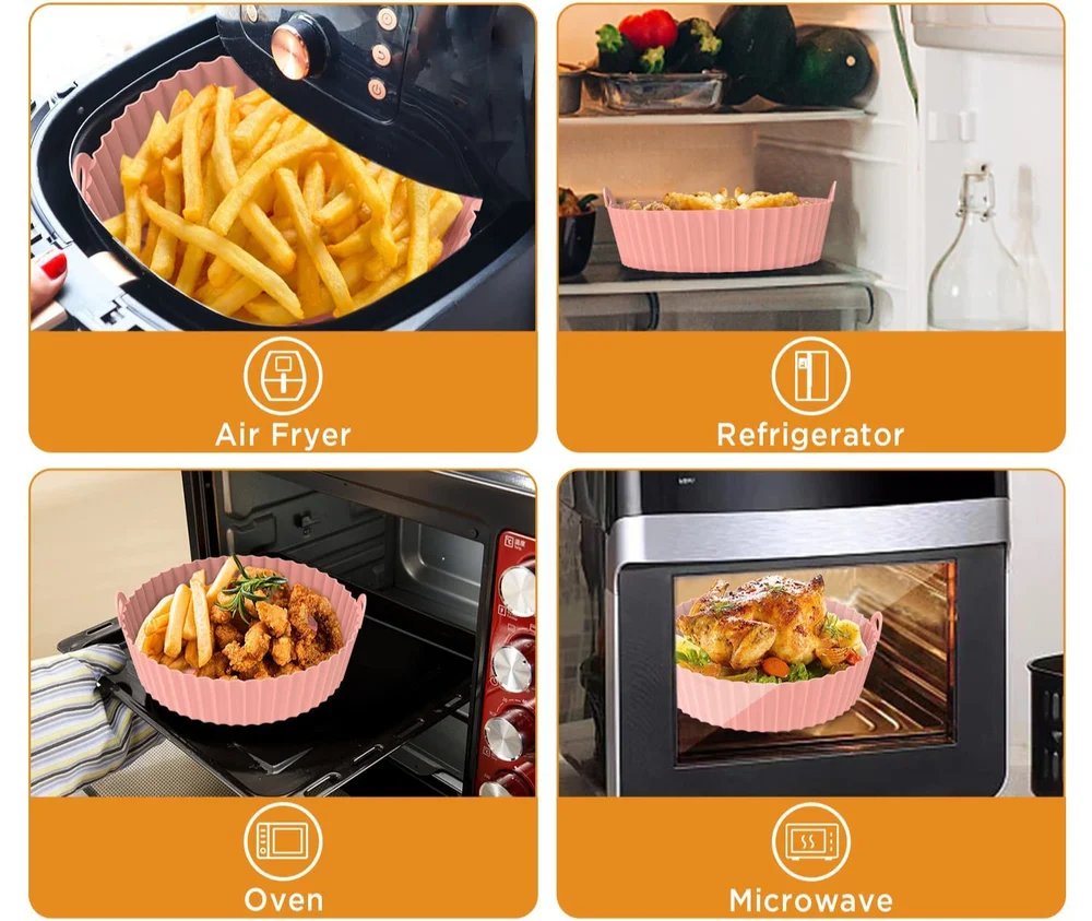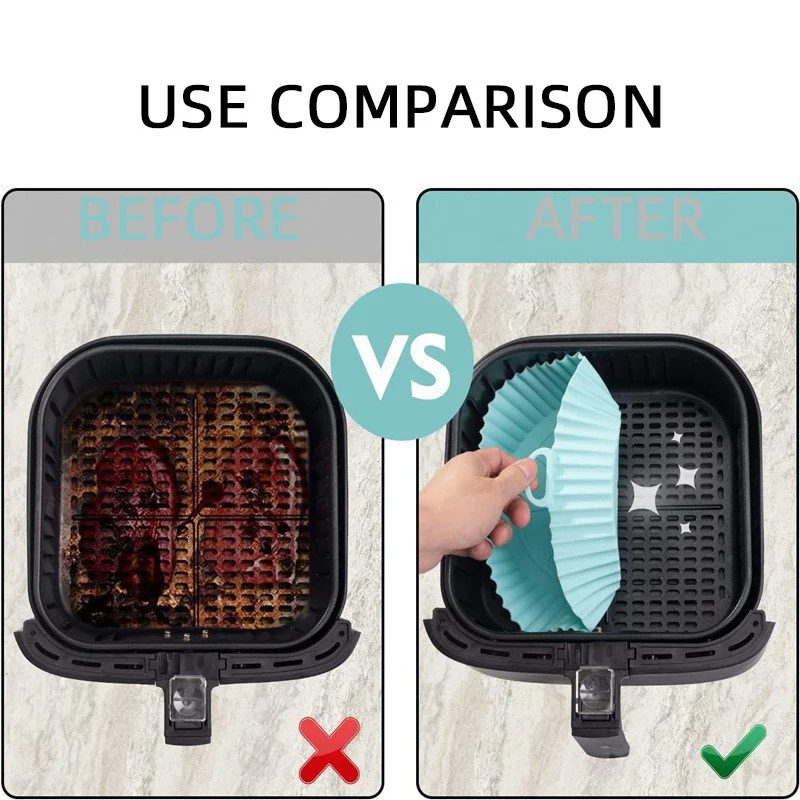 - Reusable and Save Money – Reusable air fryer silicone pots can replace other air fryer pans or disposable parchment paper. The carefully designed 360°air circulation structure makes the heat distribution more uniform so that your food can be cooked perfectly in a shorter time & no more risk of flammability.
